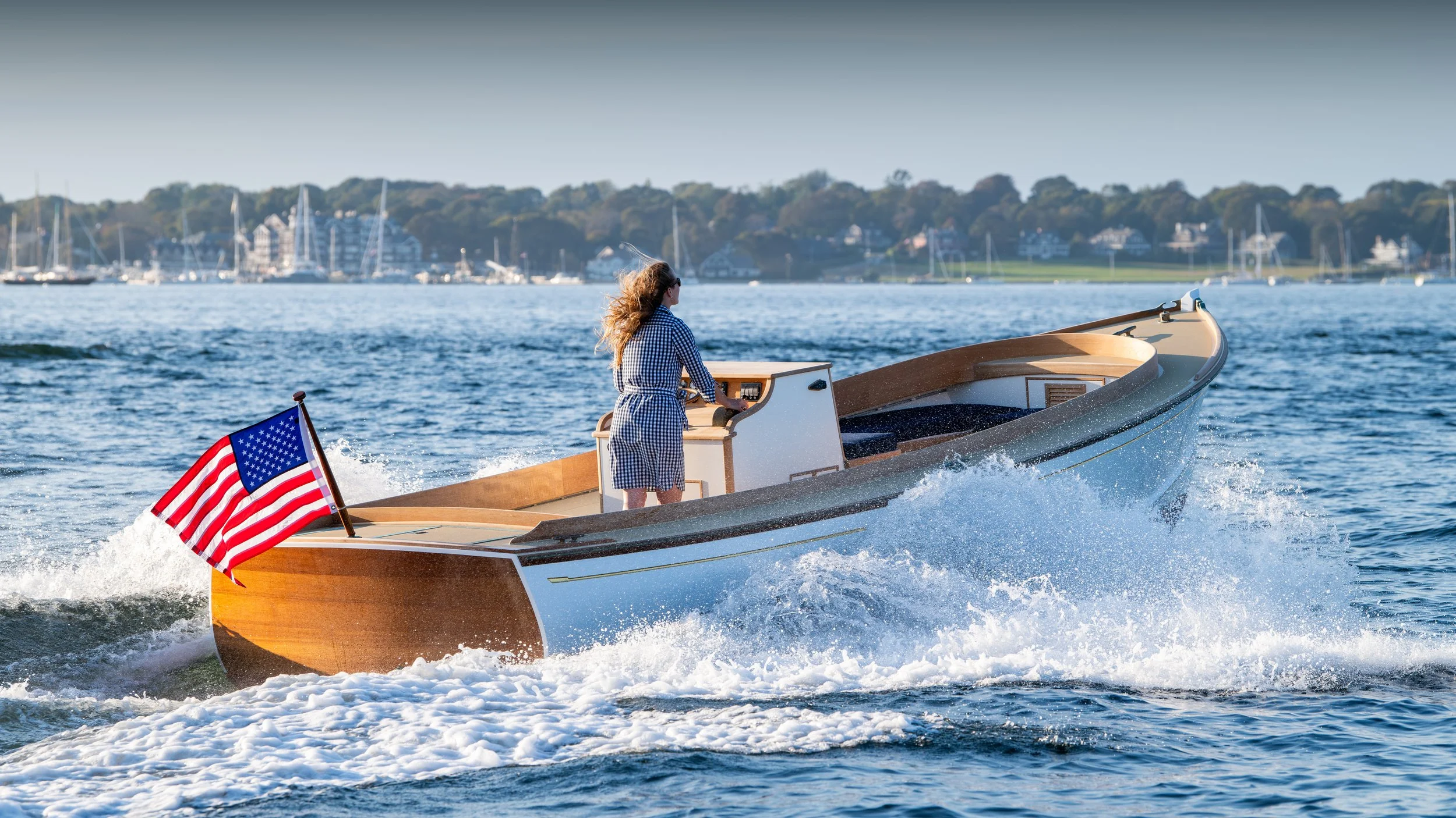 The East Passage 24 is a modern runabout designed with timeless elegance. The strength and warmth of her wooden construction perfectly balances comfort, style and performance.